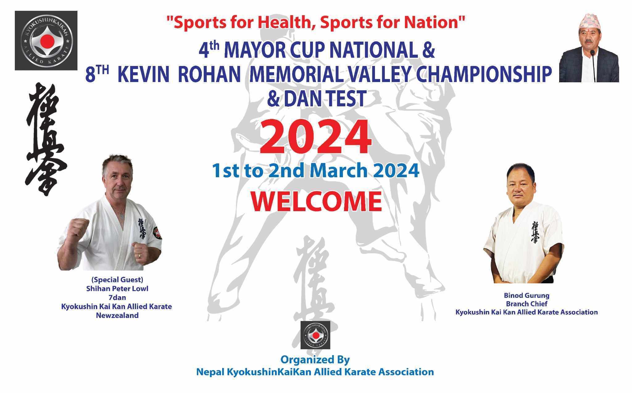 प्रतियोगिताका लागि अन्तर्राष्ट्रिय क्योकोसिन काईकान अलाइट संघका अध्यक्ष पेटर ल्वल, उपाध्यक्ष पेटर होगर्थ, अन्तर्राष्ट्रिय साबाकी कराते-दो तेसिन्काई संगठनका संस्थापक तथा अध्यक्ष (कान्चो) बेरी जोनस्टोन सहभागी थिए । प्रतियोगिताको अध्यक्षता विनोद गुरुङले गरेका थिए । प्रतियोगिता आइतबारसम्म चल्नेछ ।
